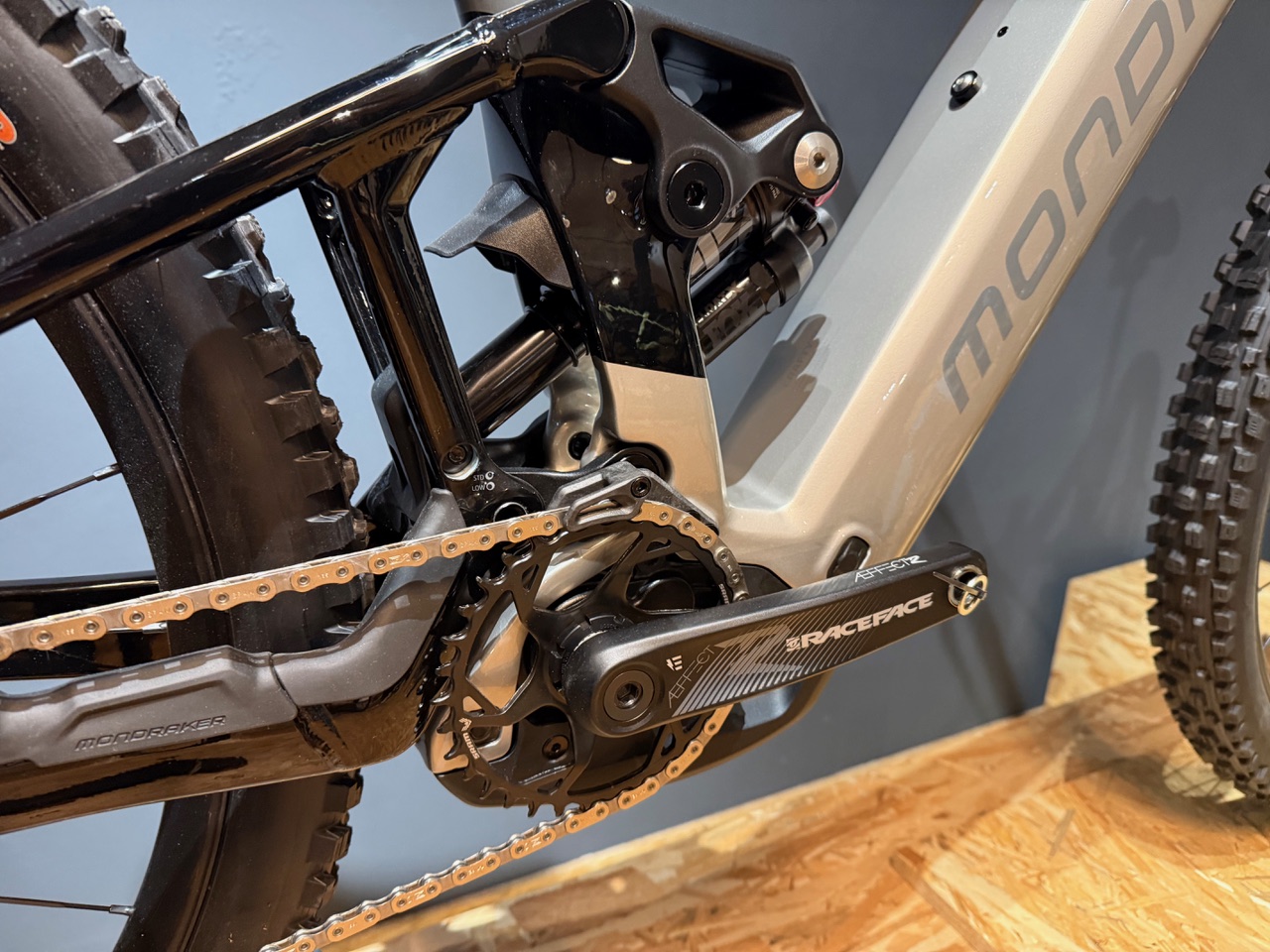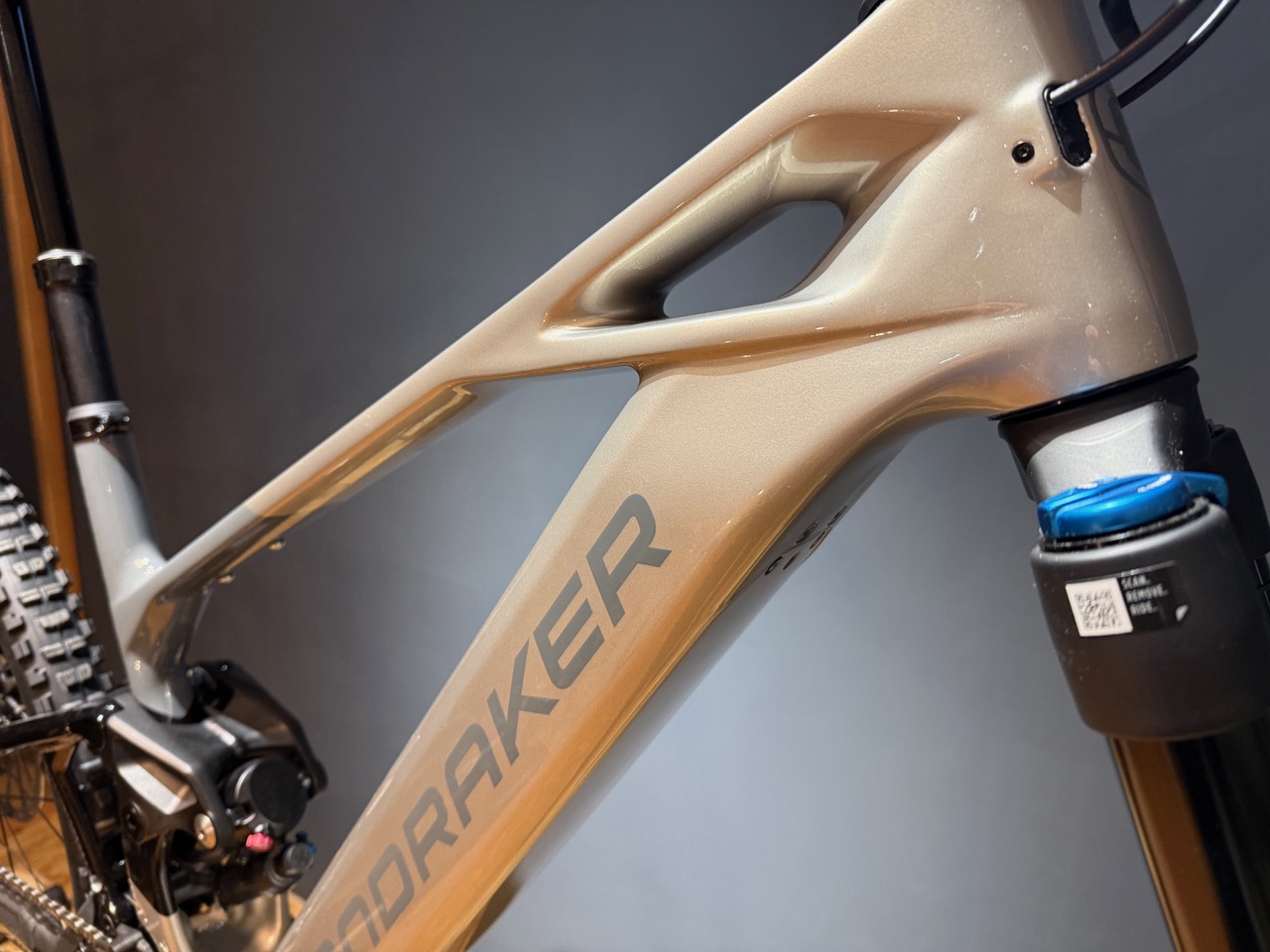 Telaio con triangolo anteriore in carbonio Stealth e carro posteriore in alluminio.